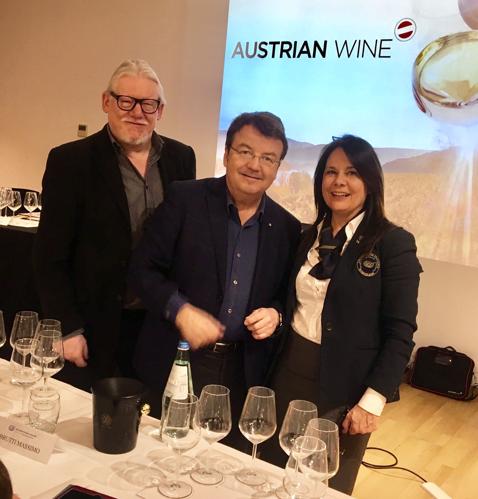 Due le nostre guide: Willi Klinger, Direttore dell’Austrian Wine Marketing Board, l'agenzia di promozione nazionale dei vini austriaci, e Helmut Knall, giornalista enogastronomico e scrittore, curatore della selezione dei vini proposti durante la serata, tutti e solamente a base di Grüner Veltliner.